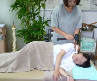 まず、患者さんの体をチェックし、ゆがみやコリを見極めます。