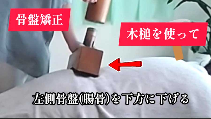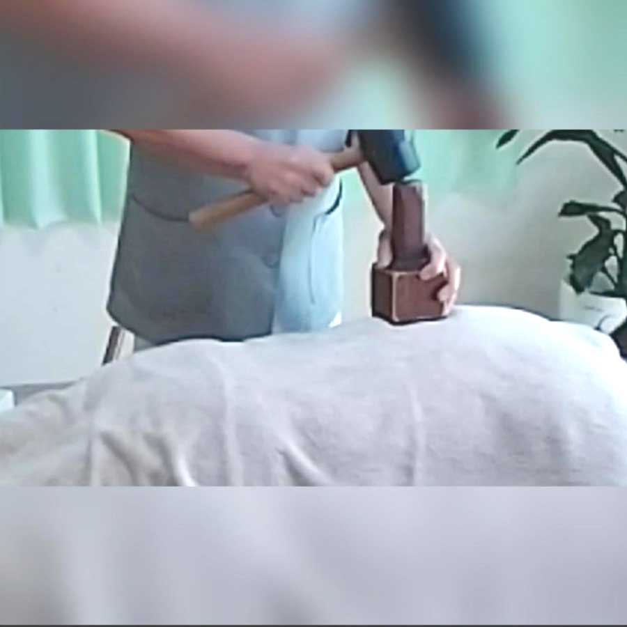 木槌を用いて心地よい刺激で骨盤等の調整をします。この施術には力は必要ないので、女性でも楽に骨盤等を整えることができます。